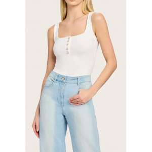 Spaghetti strap sequin camisole with cowl neckline and racer back. Amazing with the Belluci sequined pant for a party or pair with denim for date nigh..